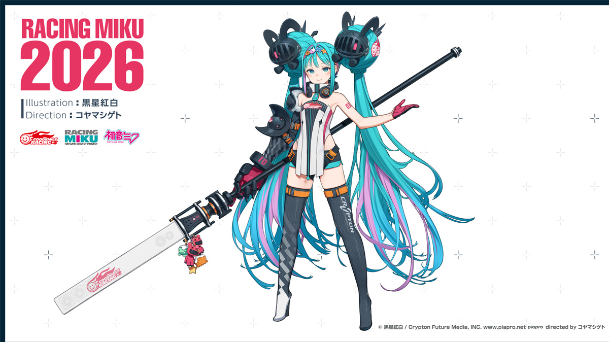 初音ミク GTプロジェクトの公式キャラクター「初音ミク レーシングVer.2026(通称:レーシングミク 2026Ver.)のイラストを担当するのは、「サモンナイトシリーズ」キャラクターデザイン「キノの旅」「ソードアート・オンライン オルタナティブ ガンゲイル・オンライン」小説挿絵など、多くの作品を手掛ける人気イラストレーター、黒星紅白(@kuroboshi)氏が担当します。